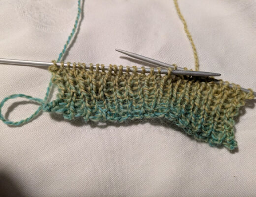 Aus dem Buch „Linke Masche Rechte Masche von Bernd Kestler probierte ich den doppelten Loop von Seite 106 zu Stricken. Dafür 260 Maschen anschlagen und zur Runde schließen war schon die erste Herausforderung. Erst später stellte ich fest, dass…