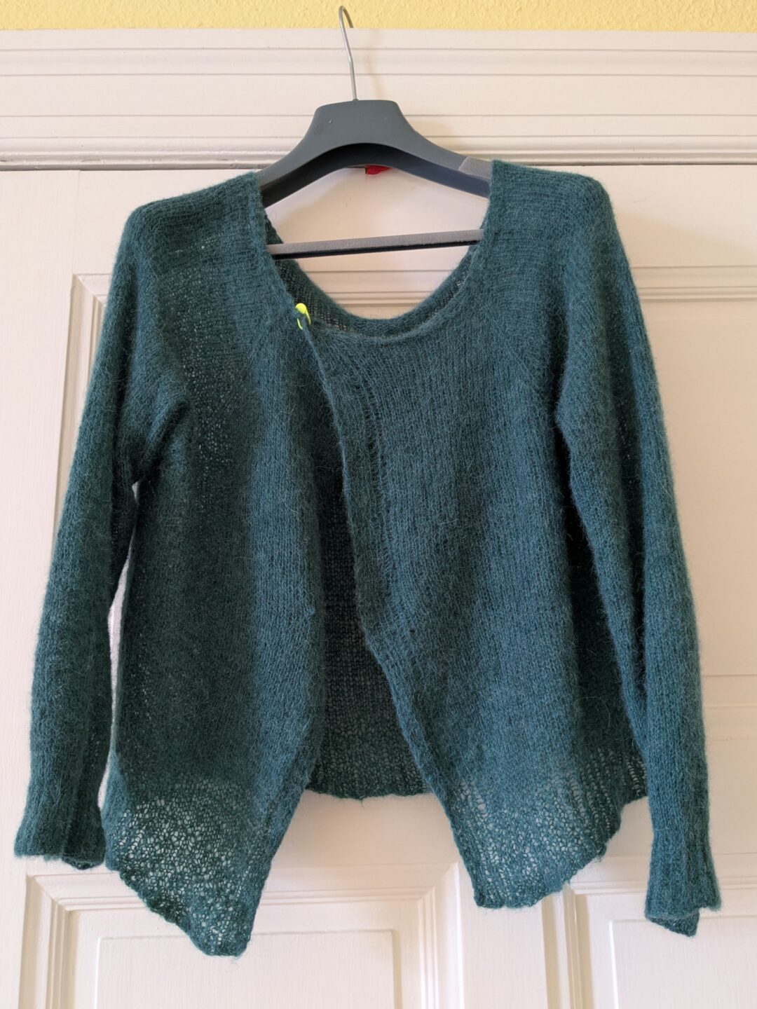Soweit bin ich schon gekommen…über die Aufteilung der Raglanmaschen werde ich noch berichten…