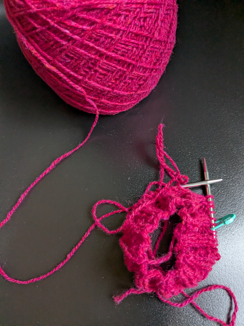 Insgesamt lässt es sich mit dem Sockenwunder flott stricken. Wichtig ist es nicht zu verkrampfen. Die linke Hand hält die kurze Nadel nur und die rechte lange Nadel führt und damit werden die Maschen eigentlich gestrickt.