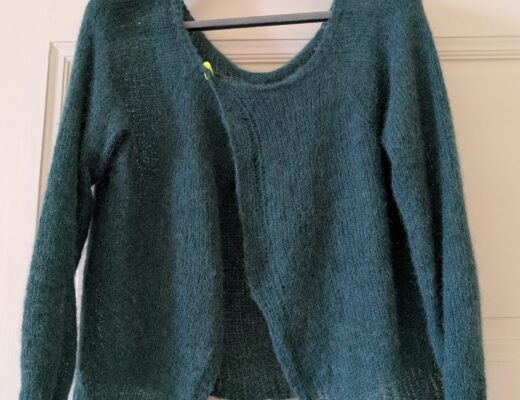 Im Spätsommer 2024 kaufte ich ein günstiges Bändchengarn von Gedifra in meiner Lieblingsfarbe. Daraus fing ich nach einer Strickanleitung aus der Sabrina 6/2022 ein Lochmuster-Shirt an. Das hatte ich noch nie gestrickt…Lochmuster in einem Schal schon. Hier ist jetzt…